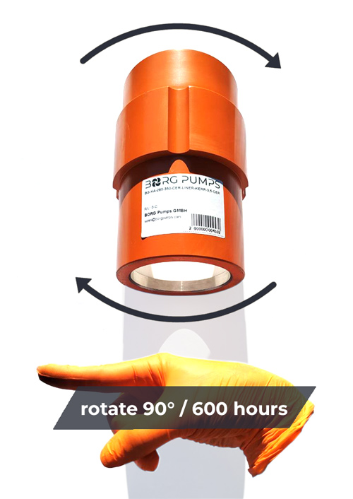 For this reason: to achieve maximum durability of zirconia liners, it is extremely important to rotate the insert by 1/4 turn every 600 hours of operation. In addition, the gasket of the insert should also be replaced during scheduled maintenance.