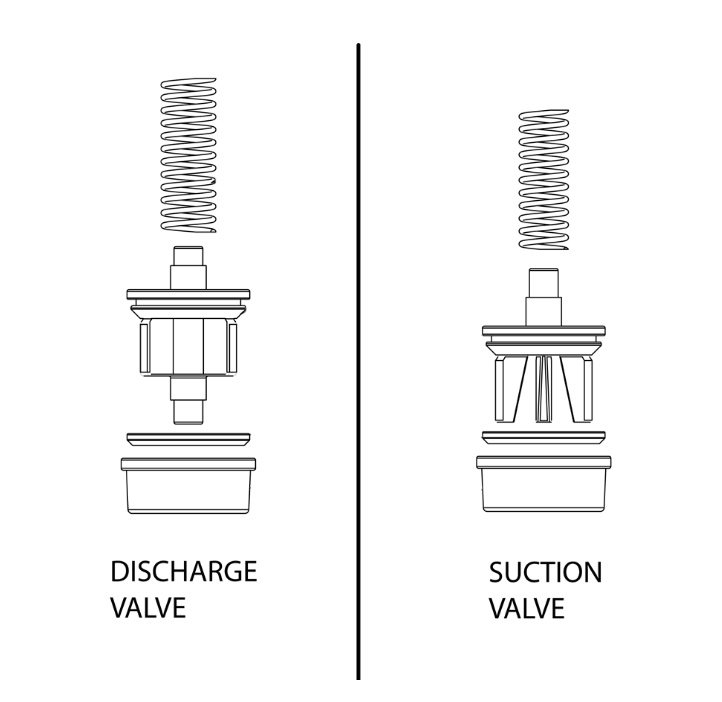Disc valves, in turn, are of two types: suction and discharge. The structural differences are shown in the diagram below.